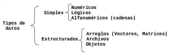- Estructurados: Ocupan varias celdas de memoria. Entre este tipo se encuentran las cadenas de caracteres, arreglos, matrices, registros.